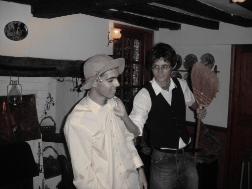 It's 'Scalper Spurling' a notorious drunk and gambling fiend. The barman knows he's had enough and bravely tries to make him leave in order to maintain the peace of his establishment.