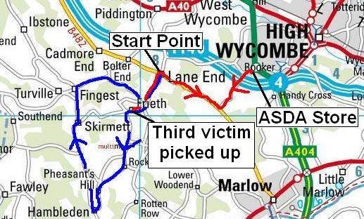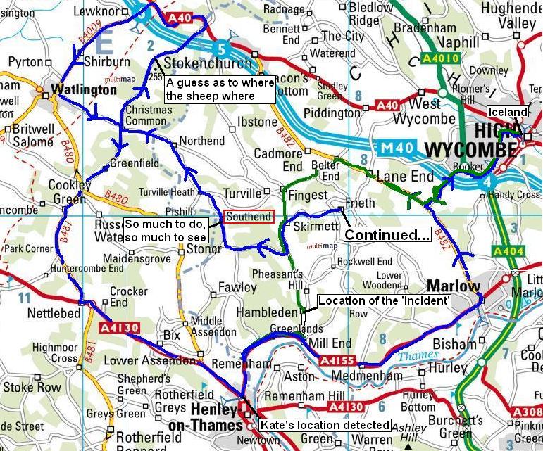with him around a really random route, going from Lane End to Hambleden via Southend, Lewknor, Watlington, Nettlebed, Henley, Marlow and